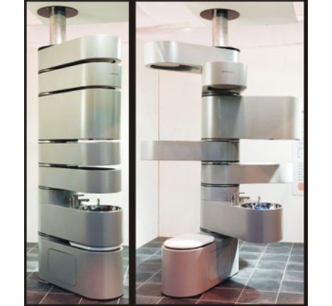 Đủ các chức năng, bồn cầu, bồn rửa, vòi tắm, giá để đồ, máy sấy khô… chỉ trong một khoảng không gian chưa đầy 0.5m2.