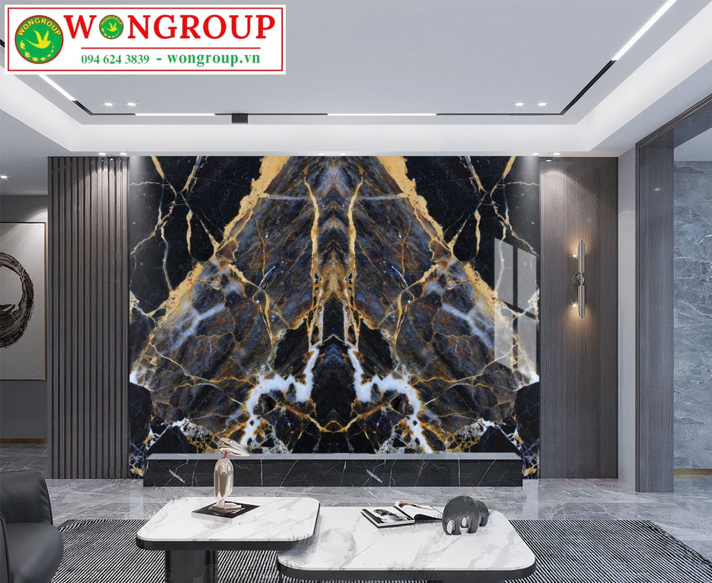 Mẫu Vân Đá Xuyên Đèn Trang Trí Vách TV Chủ Đề: Tranh vân đá đối xứng