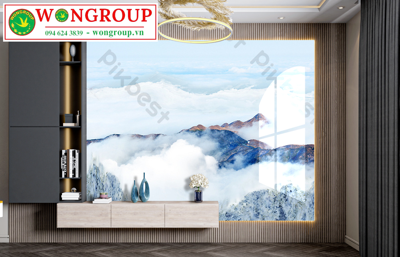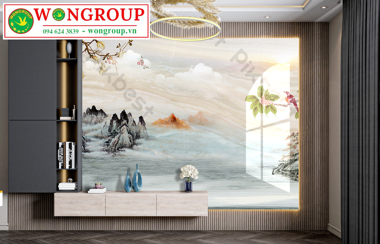 Mẫu Vân Đá Xuyên Đèn Trang Trí Vách TV Chủ Đề: Phong cảnh