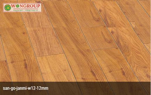 Sàn gỗ Janmi 12mm bản to cốt chịu nước, chống mối mọt. Sản phẩm chuyên dùng tại những nơi dễ có nguy cơ dính nước như tầng một ẩm thấp, khu bếp và cửa nhà vệ sinh. Với bề dày 12mm sản phẩm có thể lát được tại những nơi có mặt bằng không được bằng phẳng lắm..