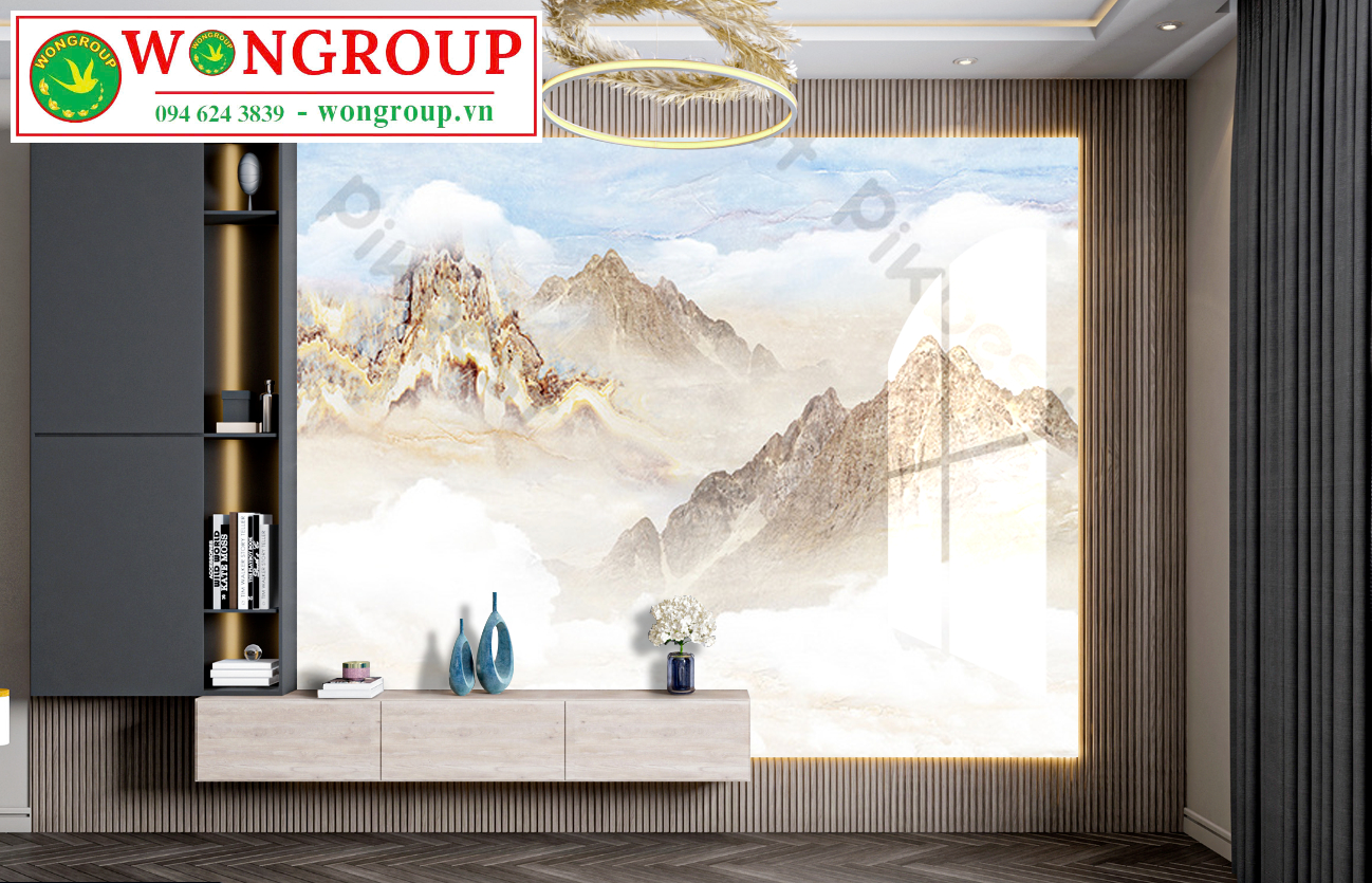 Mẫu Vân Đá Xuyên Đèn Trang Trí Vách TV Chủ Đề: Phong cảnh